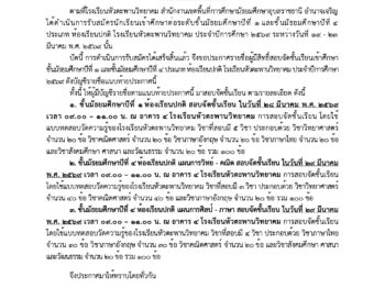 ประกาศผลทดสอบวัดความรู้เพื่อจัดชั้นเรียน ม.1 -ม.4/ 2569